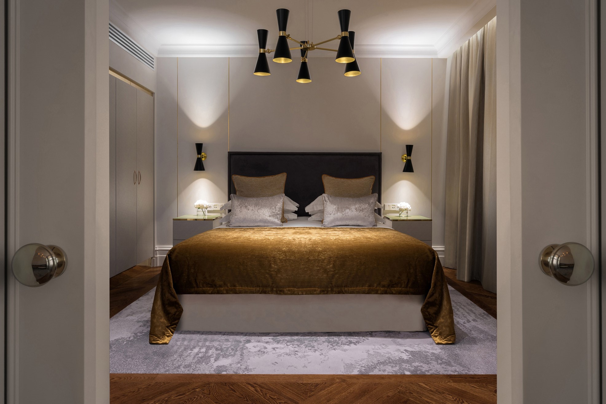 Элегантные комфортабельные апартаменты, расположенные над Невским проспектом, станут вашим идеальным домом в Санкт-Петербурге. Все детали интерьера, от соблазнительной королевской кровати до великолепного вида на исторический центр города, создают идеальный баланс между роскошью и современным комфортом.